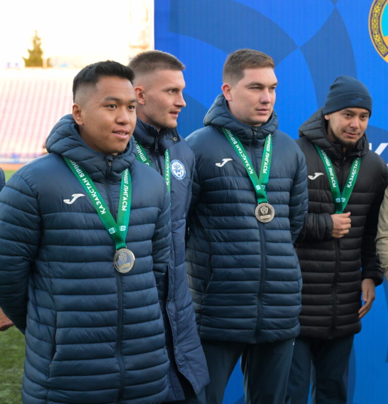 Аким Павлодарской области вручил клубу премиальный сертификат и выразил благодарность капитану команды Руслану Есимову за высокий профессионализм, лидерские качества и вклад в успех клуба. А футболисты преподнесли Асаину Байханову памятную медаль и игровую футболку сезона 2025 года.