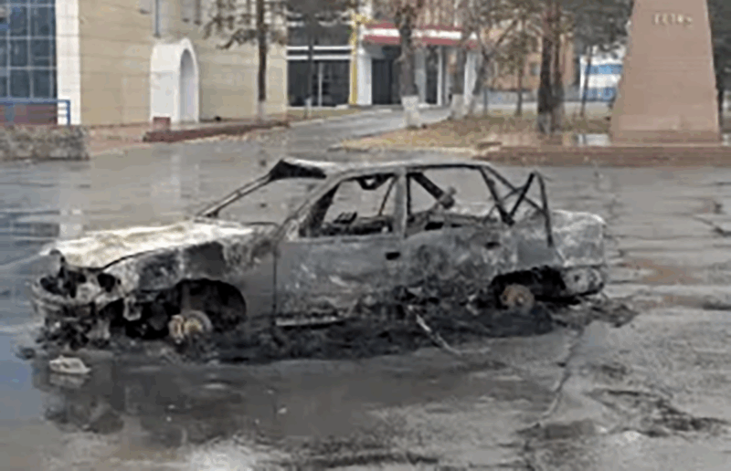 В начале шестого на улице прозвучало что-то похожее на автоматную очередь. Через 10 минут звуки повторились. Затем как будто взорвалась петарда, поднялось облачко дыма, сработала сигнализация у припаркованных у ГДК машин. Выйдя на балкон, я обнаружила, что машины срочно разъезжаются, а площадь у дворца оцепили. Затем сюда съехалось много полицейских и военных машин, прибыли пожарные автоцистерны, на эвакуаторе привезли старый автомобиль, начали обкладывать его шинами и поливать чем-то из канистр, передает Hronika.kz.