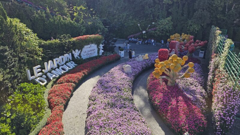 Строго говоря, здесь есть от чего «сойти с ума» — от панорам, которые открываются в Ba Na Hills со смотровых площадок, захватывает дух. Представьте место, где облака встречаются с горами, а волшебные пейзажи переносят в иную реальность. Благодаря высоте почти в 1500 метров над уровнем моря, тут всегда прохладно, и климат напоминает европейский. Утверждают даже, что за одни сутки в Ba Na Hills по очереди сменяются все времена года: утром — весна, днём — лето, вечером — осень и ночью — зима. Разница с температурой на побережье разительная, поэтому имеет смысл брать с собой тёплую одежду.