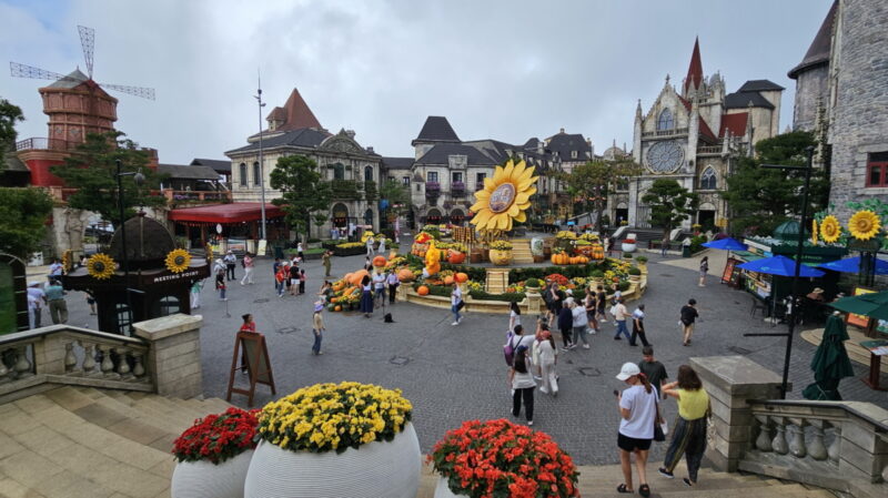 Больше всего меня впечатлил католический собор на главной площади в Ba Na Hills. А ещё удивила «выставка достижений» местного сельского хозяйства и море цветов вокруг. Во всех уголках французской деревни цветов так много (причем не только азиатских, но и привычных для нас тюльпанов и гиацинтов), и пахнут они столь потрясающе, что возникает ощущение гигантской оранжереи под открытым небом…