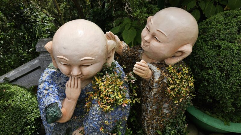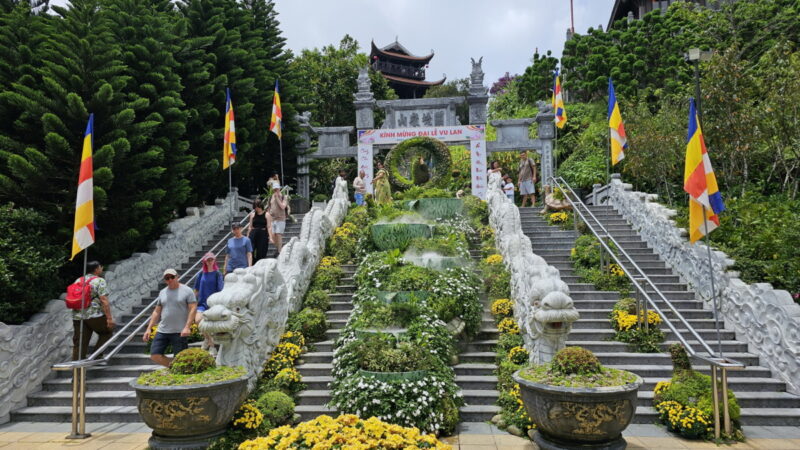 Чуть в стороне от французской деревни находится небольшой, но необыкновенно живописный уголок с пагодами. Людей в этой части парка значительно меньше, а соответственно, тут тише и спокойнее. Подняться к пагодам стоит хотя бы ради видов на окружающую местность, которые тут открываются. Создается ощущение, что ты паришь над бесконечными облаками, сквозь которые местами проглядывают вьетнамские джунгли…