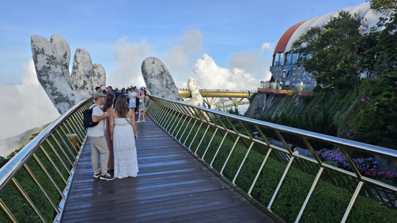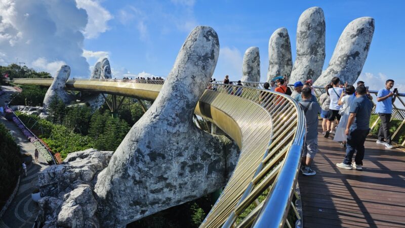 Сколько бы ни было в Дананге туристов из разных стран мира, им ни за что не переплюнуть китайцев, которыми в разгар дня забиты местные достопримечательности. Важно было не попасть в поток китайцев на Золотом мосту в Ba Na Hills; желающих пройтись по знаменитому мосту и сфотографироваться столько, что тут почти всегда толкучка. Все просто оккупировано китайскими туристами, которые стараются всюду успеть. Ей-богу, рядом с ними невольно начинаешь чувствовать себя таким же «слегка сумасшедшим»…, передает @lifepvl.kz.