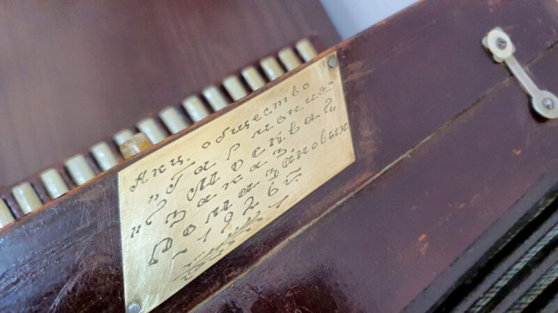 Трудно поверить, но инструмент, которому в будущем году исполнится сто лет, не просто хорошо сохранился внешне, но и продолжает красиво звучать. Семейную реликвию в музей филармонии передала внучка поэта и музыканта Эльмира Рамазанова.