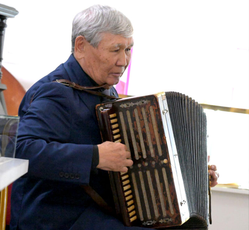 Когда старинную гармонь увидел ветеран культуры, профессиональный музыкант Асылбек Абдикаримов, он пришел в восторг и сыграл фрагменты из знаменитых произведений Майры и Естая.