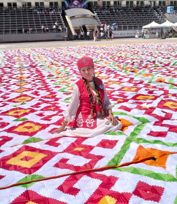 — Идею придумала Нургуль Абайхан. В 2023 году в Астане 250 мастериц объединили свои құрақ көрпе, сложив покрывала в дорожку длиной 500 метров.