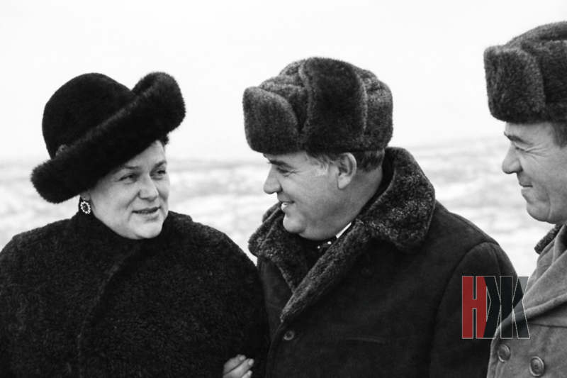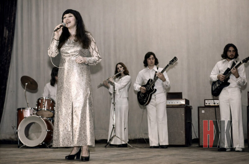 К особо ценным черно-белым снимкам относятся работы Николая Мохирева, который запечатлел приехавших по приглашению филармонии народных артистов СССР Бибигуль Тулегеновой, Льва Лещенко, Людмилы Зыкиной. Впервые на обозрение зрителей представлена фотография тогда еще совсем юной Розы Рымбаевой и директора филармонии Владимира Линчевского. Снимок сделан перед концертом на павлодарском корте в 1978 году.