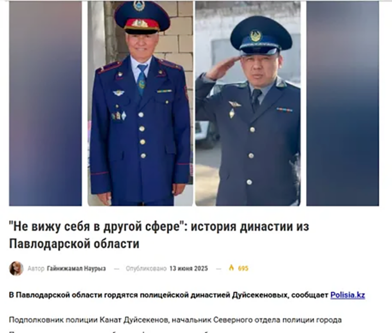 Уточним, Ержан Ерганатович Дюсекенов (фамилии у братьев немного различаются в написании) является первым заместителем прокурора Павлодарской области. Также подполковник — двоюродный брат жены председателя Верховного суда (балдыз).