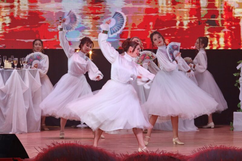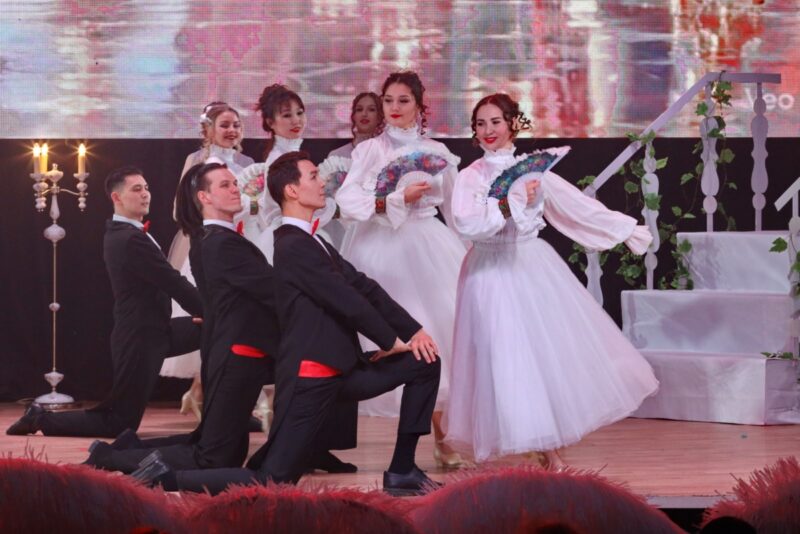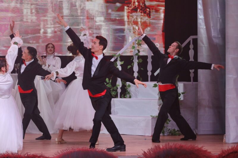 Особый блеск вечеру придали хореографические номера ансамбля «Нур» под руководством Айгуль Даирбаевой. В изысканном цыганском танце блистали Филип Валов, Наталья Валова и Айдар Жаманбалин. Этот страстный, экспрессивный и яркий номер стал настоящим визуальным акцентом концерта. А другие танцевальные миниатюры с участием артистов создавали атмосферу светского бала: лёгкость, грация, игривость и благородство. Автор оригинального сценария — Алия Нурумбетова.