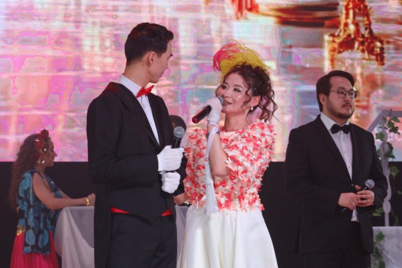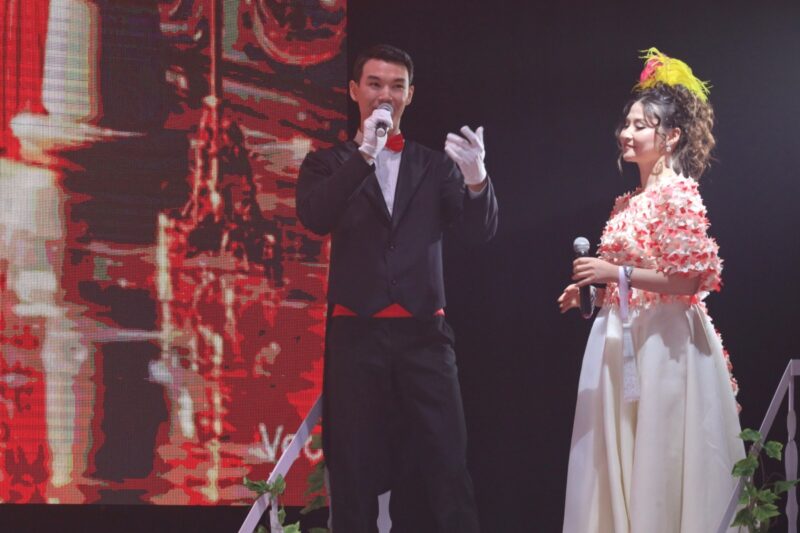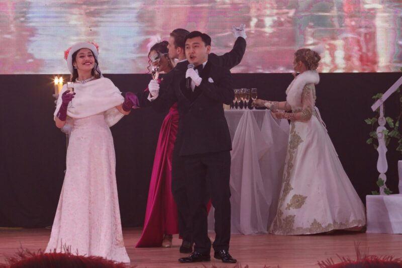 Прекрасные ведущие Отеген Шарапи и Малике Катай задавали аристократичный тон вечера. Отметим, что по оригинальному сценарию слов у них было немного, зато авторы проекта акцентировали внимание на интонациях в коротких диалогах, манерах, движениях, танцах.