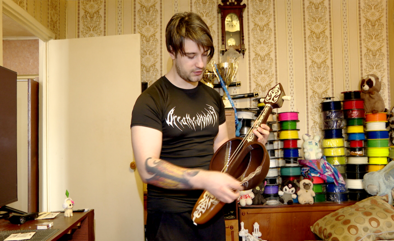 Иван Могер – специалист в сфере 3D-печати или, говоря профессиональным языком, аддиктивный инженер. На своих принтерах, которых у него в квартире с десяток, он воссоздает любые детали, мелкие фигуры из пластика. Главное, по его словам, задать правильные параметры для печати. К нашему приезду кылкобыз практически готов, Иван распечатывал пластиковые украшения для своего творения, чтобы придать ему национальный колорит и аутентичность.