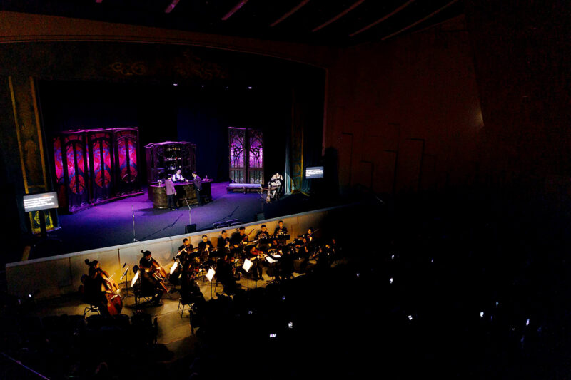 До вечернего показа прошла увлекательная встреча-путешествие в мир оперного искусства для самых маленьких. Кстати, на детском концерте «Музыка рисует и рассказывает» на сцене блистала наша талантливая землячка, одна из самых молодых артисток театра Сара Садыгулова. Через доверительную атмосферу и избранные мелодии в живом исполнении камерного оркестра юные зрители узнали, что такое опера, чем отличаются голоса, и открыли для себя много других премудростей оперного искусства.
