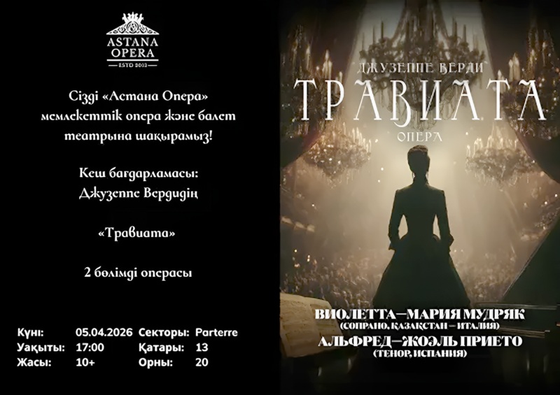 Сегодня, 5 апреля, накануне своего 32-летия, на сцене театра Астана Опера впервые за последние семь лет в опере споет Мария Мудряк. Она исполнит партию Виолетты в «Травиате» Джузеппе Верди, написанной по мотивам автобиографического романа Александра Дюма-сына «Дама с камелиями». Эта партия куртизанки, умирающей от неизлечимой болезни, считается одной из самых сложных для сопрано и была любимой у великих Ренаты Тебальди, Марии Каллас, Монсеррат Кабалье, Бибигуль Тулегеновой, передает Hronika.kz.
