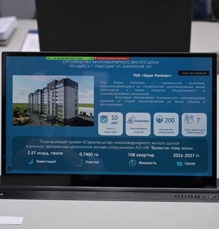 Кроме этого, в ходе заседания Регионального инвестиционного штаба рассмотрен инфраструктурный проект АО «НК Қазақстан темір жолы» в рамках программы «Доступное жилье» для сотрудников компании. Проект стоимостью 2,6 млрд тенге реализуют в 2026-2027 годах. Компанией запланировано строительство девятиэтажного многоквартирного жилого дома на 108 квартир в чистовой отделке.