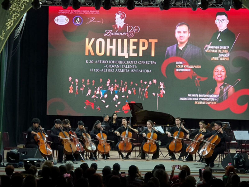 Украшением вечера стало выступление ансамбля виолончелистов под управлением Акмарал Эмреевой. На сцене также выступила юная павлодарка – ученица 10 класса Жубановской школы, виолончелистка Камила Ирангаит.