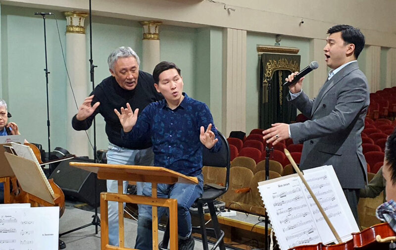 Дирижёр Дияс Усенов доверил сольные партии баритонам Айбару Ашкееву и Алижану Казбекову, а настроить коллектив на единую волну помог основатель оркестра, заслуженный деятель Болат Рахимжанов. Маэстро трепетно относится к делу, по-отечески поддерживает артистов и даёт профессиональные советы. Благодаря этому знакомые мелодии зазвучали по-новому – легко, страстно и выразительно.