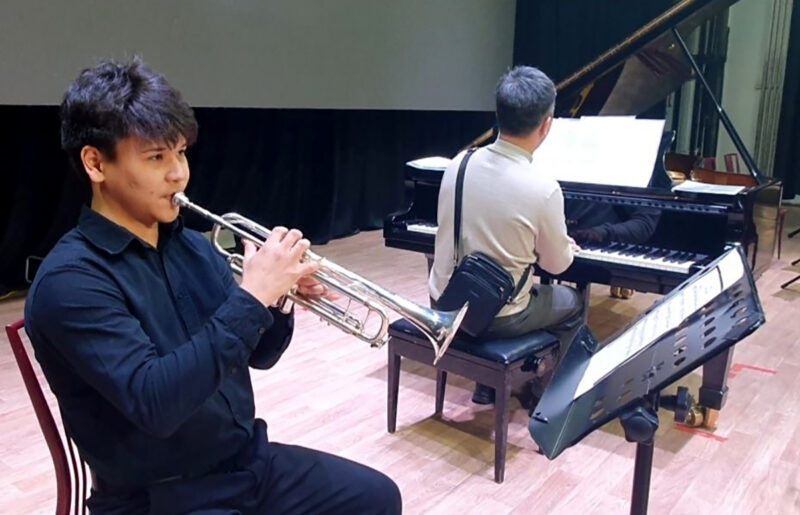 Произведение исполнили артисты молодёжного камерного оркестра «Giovani Talenti» под управлением дирижёра Аршата Шарипа. Солировать на трубе маэстро пригласил студента музыкального колледжа Жасулана Турегельды. После недавних побед на конкурсах 19-летний павлодарец получил широкую известность: специалисты уже называют его «номером 1» среди молодых трубачей Казахстана и пророчат большое будущее. На концерт он вышел сразу после гастролей, где вновь произвёл фурор.