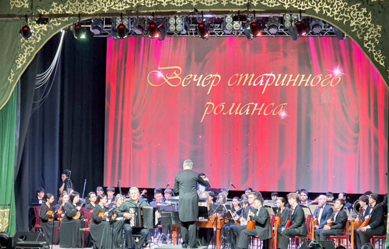 Зал тепло принимал Малику Казмагамбетову, исполнившую «Калитку» Обухова и «Тёмно-вишнёвую шаль». Дирижировала оркестром студентка колледжа Мария Измайлова. Песню «Дорогой длинною» исполнила Валерия Синицына, за дирижёрским пультом – лауреат международного конкурса «Золотая Сибирь» Канат Смагулов.