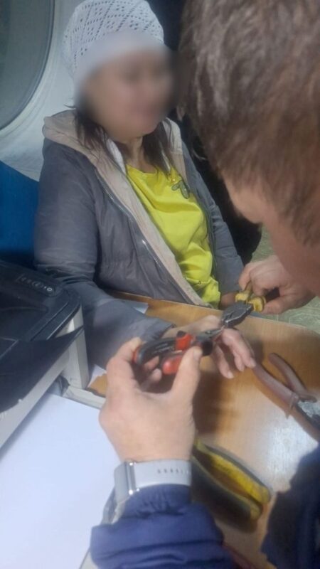 «Горожанка не могла самостоятельно снять кольцо с сильно отекшего пальца. Ситуация осложнялась подозрением на перелом. Спасатели, используя специальное оборудование, аккуратно освободили палец», — сообщили в ДЧС Павлодарской области.