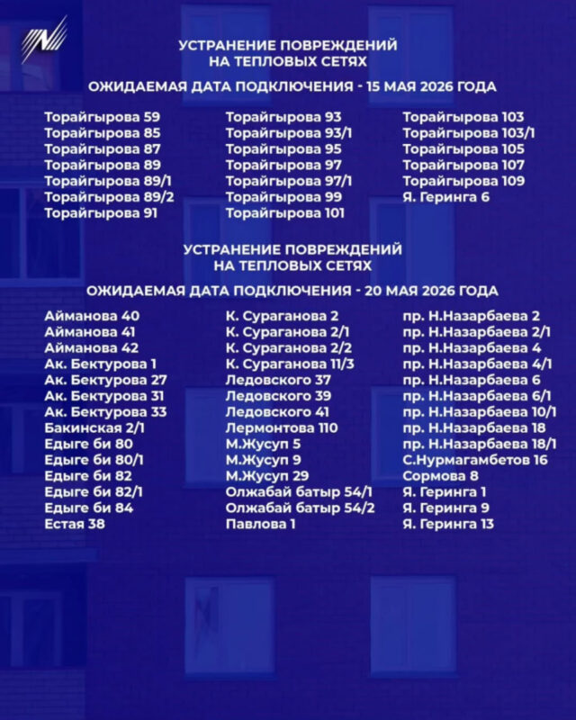 Горячее водоснабжение в северной части Павлодара после гидравлических испытаний теплосетей планируют восстановить до 20 мая. Об этом сообщили в АО «Павлодарэнерго», передает @lifepvl.kz.